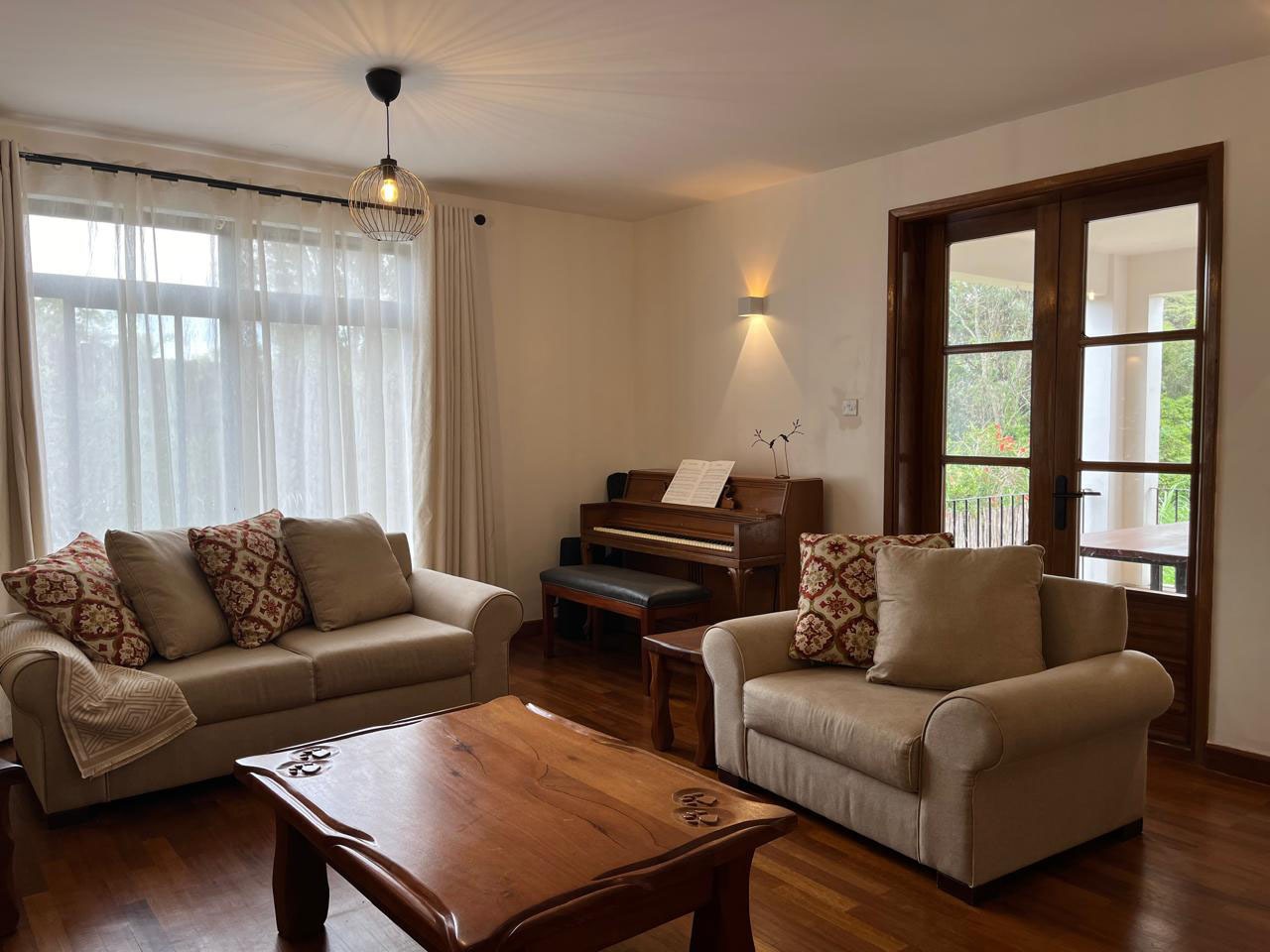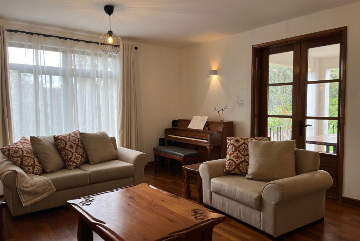Upstairs, two ensuite bedrooms provide privacy and tranquility, each with modern finishes and serene views. The house also benefits from 24-hour security, reliable borehole water supply with storage, backup power, and a perimeter wall with electric fencing.